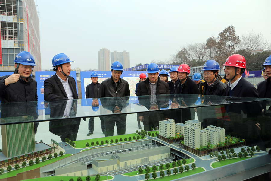 下午3時30分,劉守成副市長來到崔家店工地現場,觀看了宣傳欄和沙盤模型,聽取了工作匯報,對工程進度表示滿意,希望中鐵城投繼續發揚中國中鐵“勇于跨越、追求卓越”的企業精神,科學配置資源,加快施工進度,確保7號線按期交付運營。劉副市長向堅守崗位的一線建設者致以新春的慰問,要求中鐵二局六公司項目部高度重視春節期間的安全生產工作,關心一線員工的文化生活。