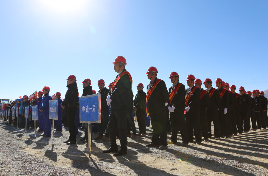 西藏自治區日喀則市委書記張延清,市委副書記、市長劉虎山,區政協民族宗教委員會副主任、市政協副主席、總工會主席堯西·索朗扎巴,市委常委、秘書長雷進昌;市人大常委會副主任夏加,副市長桑珠次仁;中鐵城投集團黨委副書記、紀委書記吳國強,中鐵一局副總經理湯勇等出席奠基儀式。日喀則市直管部門領導,監理單位,中鐵城投西藏分公司、中鐵一局三公司的建設者參加了開工儀式。