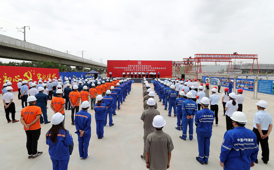 中國中鐵投資建設管理的成都天府機場高速公路,作為成都天府國際機場交通基礎設施配套工程,既是四川天府國際機場正常運轉的重要保障,也是成都規劃建設的“三環十五射”西部高速公路主樞紐路網的重要組成部分。項目全長約89公里,包括起點連接線、主線、天府支線和機場南線四部分。重難點項目有錦江區、天府新區境內高架特大橋,天府支線高架特大橋,龍泉山1號隧道、龍泉山2號隧道,白鷺灣樞紐互通立交、高廟山樞紐互通立交和天府機場T1/T2互通立交等。高速公路建設總工期3年,2016年8月舉行開工儀式,計劃在2020年與天府國際機場同步投入使用。