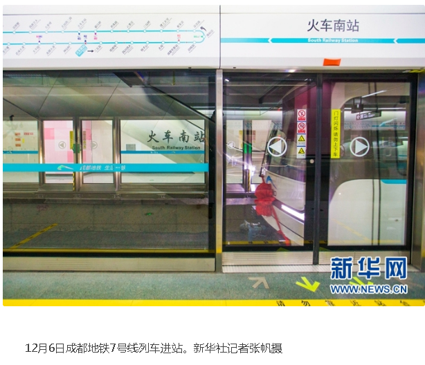 12月6日,中國中鐵在西部地區首條一次性建成、一次性移交、一次性運營的城市地鐵——成都地鐵7號線開通試運營,標志著成都地鐵邁入“井+環”線網時代。新華社發了消息,眾多媒體轉載。